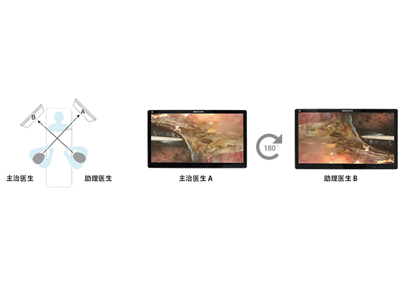 Independientemente de la orientación de la cámara quirúrgica, puede rotar o reflejar la imagen mostrada 180 grados para encontrar la visión quirúrgica perfecta, mejorando la comodidad de la sala de operaciones.